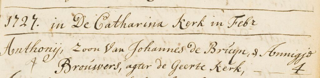 Doopinschrijving Anthonij de Bruijn, 04-02-1727