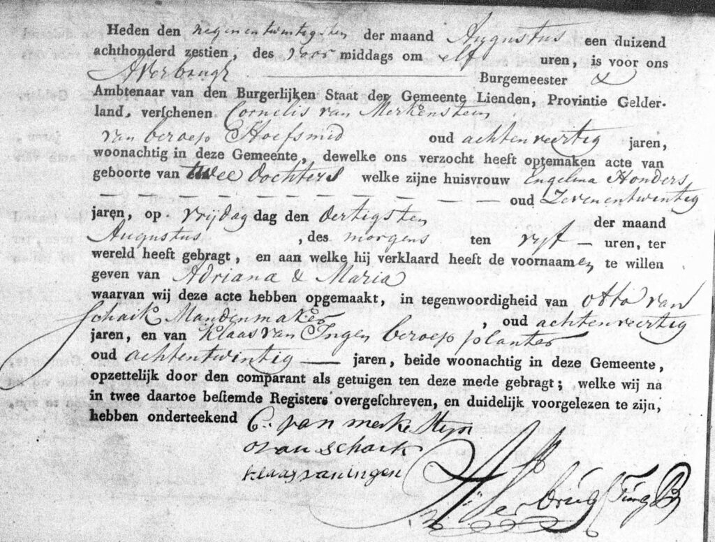 Geboorte Adriana van Merkenstein, 30-08-1816