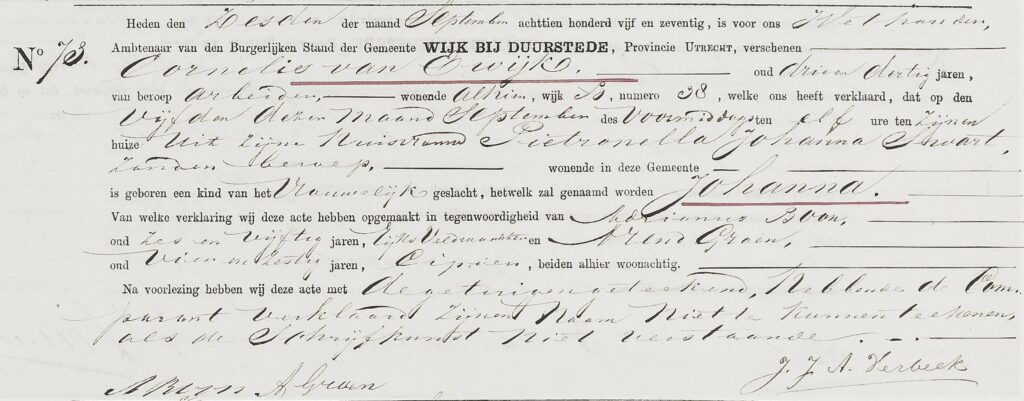 Johanna Van Ewijk, geboren op 05‑09‑1875 te Wijk bij Duurstede, overleden op 04‑12‑1961 op 86‑jarige leeftijd.