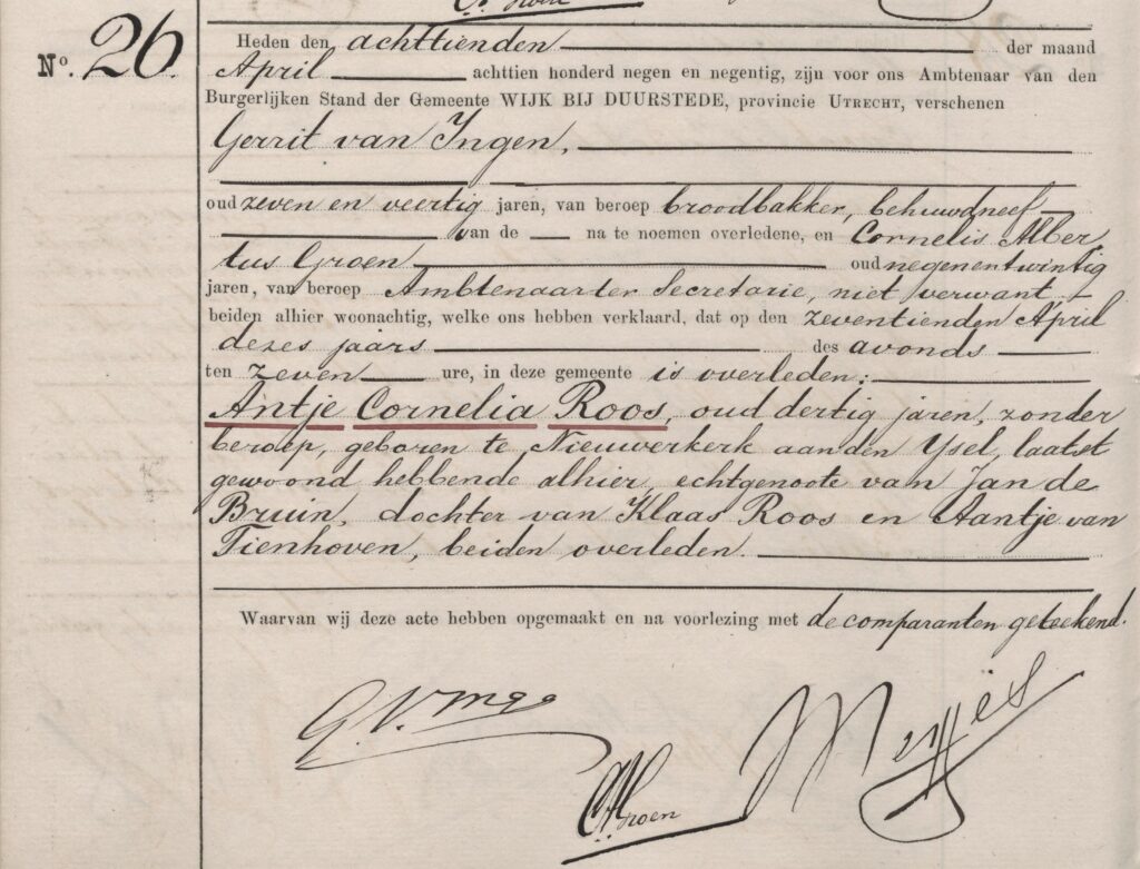 Opmerkingen eerder weduwnaar van Antje Cornelia Roos