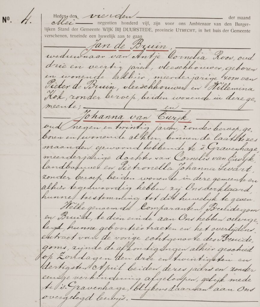 Huwelijk Jan de Bruin en Johanna van Ewijk, 04-05-1905