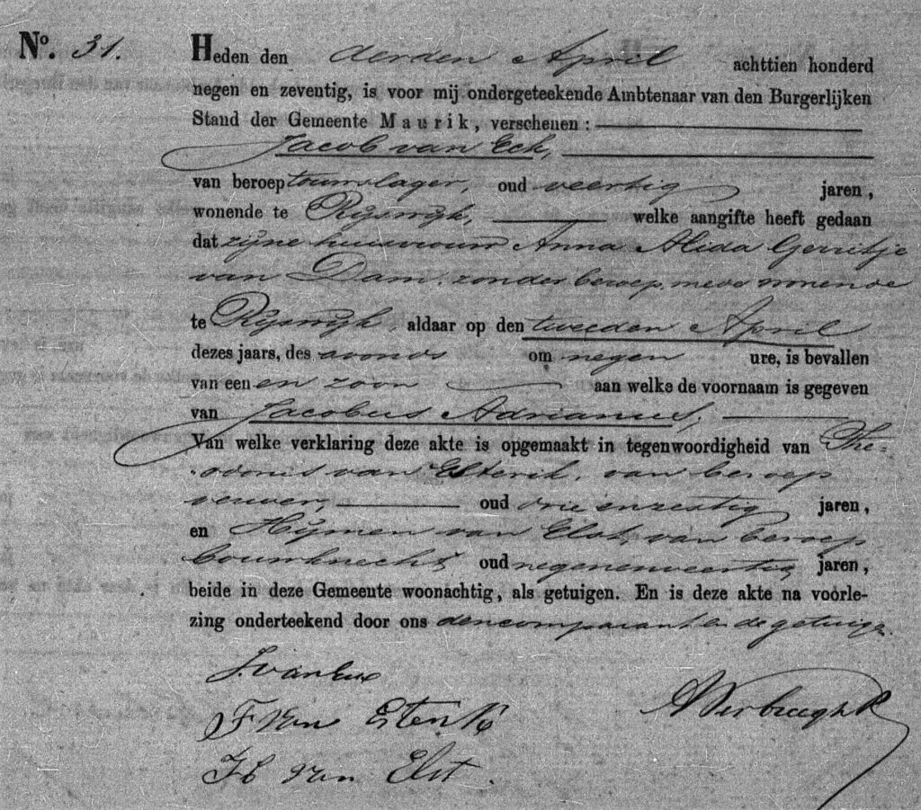 Kinderen van Johanna Petronella de Bruin en Jacobus Adrianus van Eck