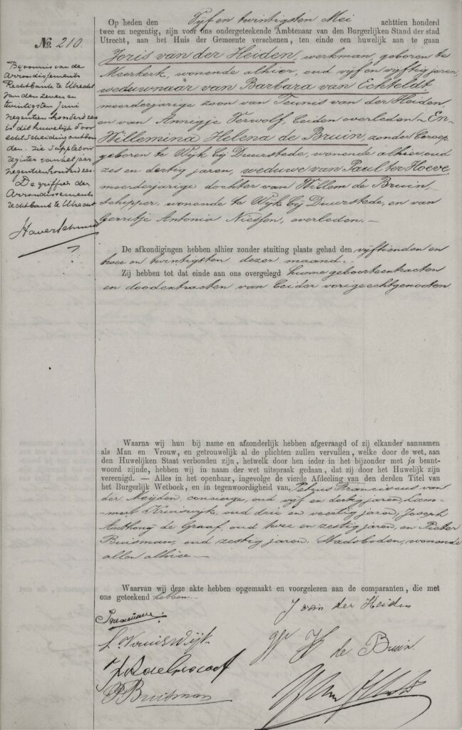 Huwelijk Joris van der Heiden en Willemina Helena de Bruin, 25-05-1892