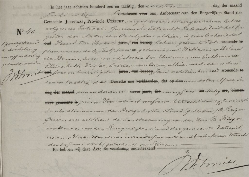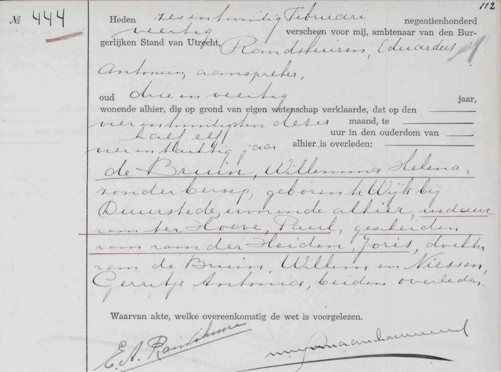 Opmerkingen Huwelijk ontb. door echtscheiding arr. rechtb. Utrecht 27-06-1906 Brg= weduwnaar van Barbara van Echtelt