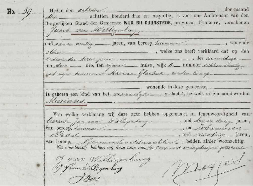 Geboorte Marinus van Willigenburg, 06-05-1893