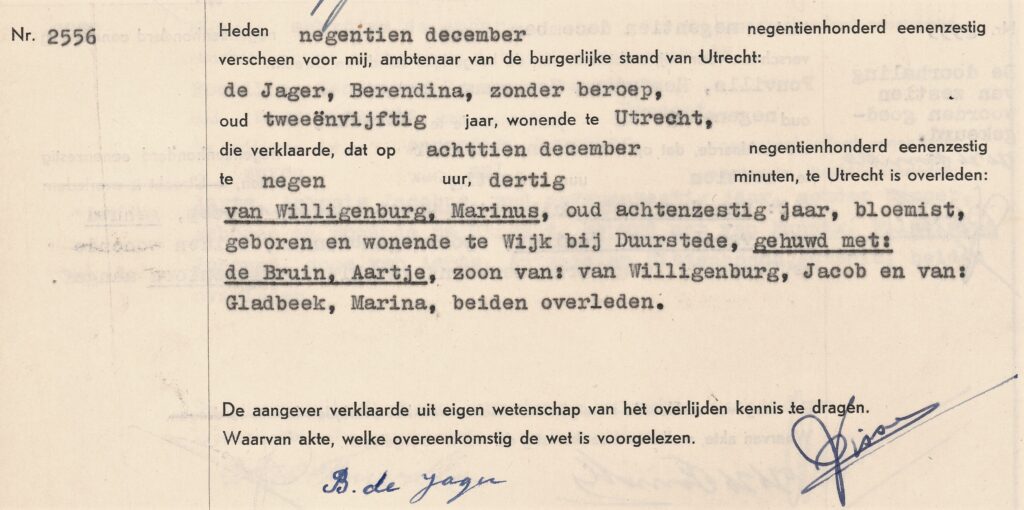 Overlijden Marinus van Willigenburg, 18-12-1961