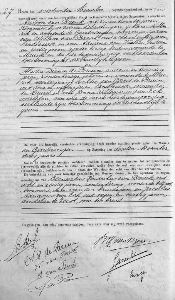Huwelijk Alida Diena de Bruin en Antoon van Brenk, 14-11-1928