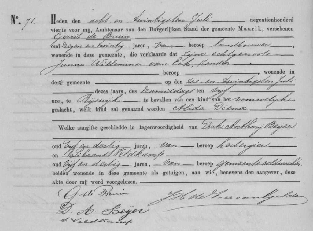 Geboorte Alida Diena de Bruin, 26-07-1904