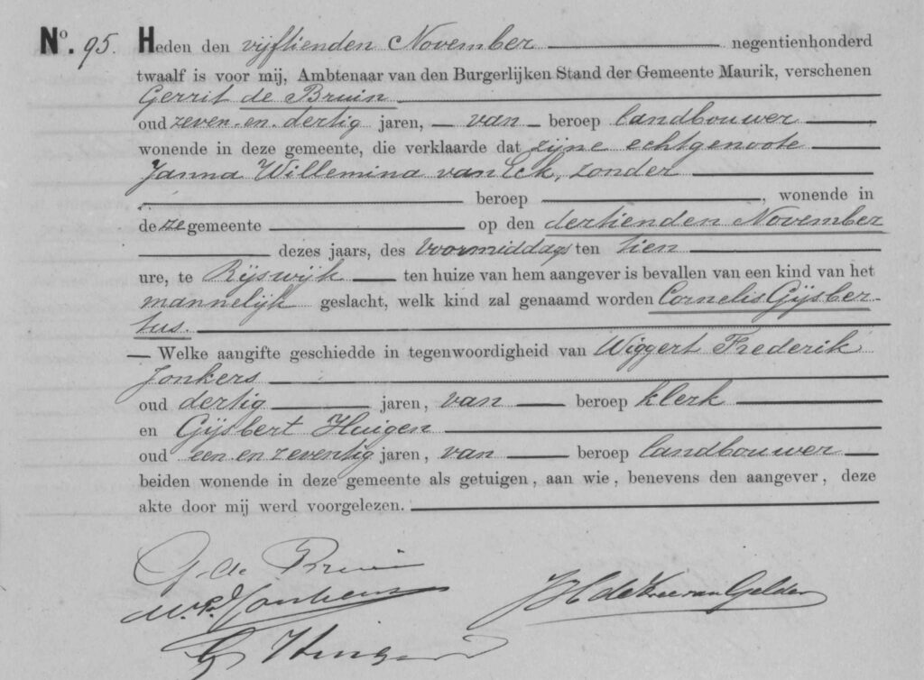 Geboorte Cornelis Gijsbertus de Bruin, 13-11-1912
