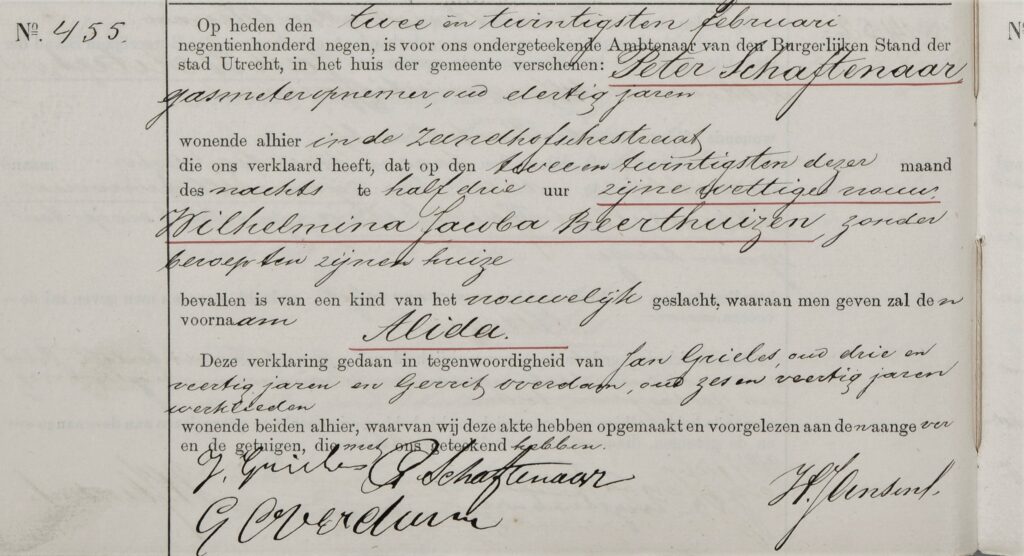 Geboorte Alida Schaftenaar, 22-02-1909