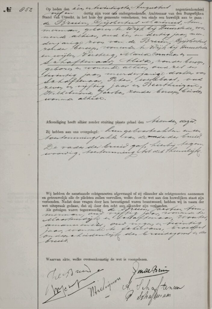 Huwelijk Gijsbertus Marinus de Bruin en Alida Schaftenaar, 21-08-1935