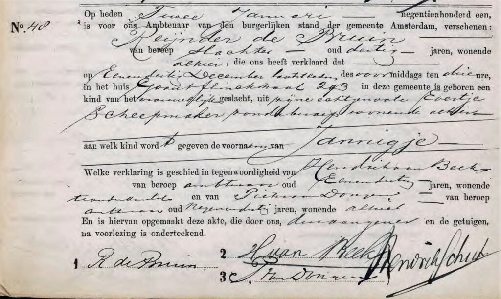 Jannigje de Bruin, zij is overleden op 20 januari 1986, zij was toen 85 jaar oud.