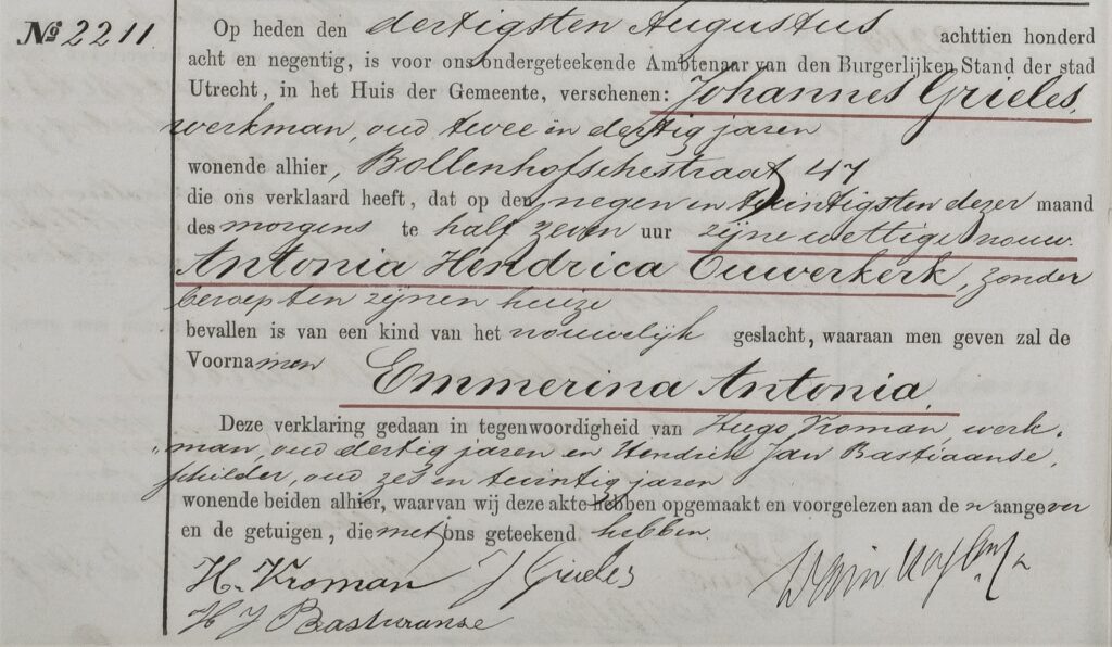 Geboorte Emmerina Antonia Grieles, 29-08-1898