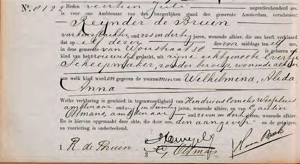 Geboortegegevens Wilhelmina Alida Anna de Bruin