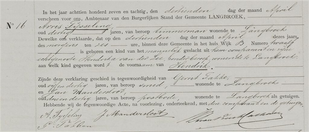 Geboorte Hendrik Tijsseling, 13-04-1887