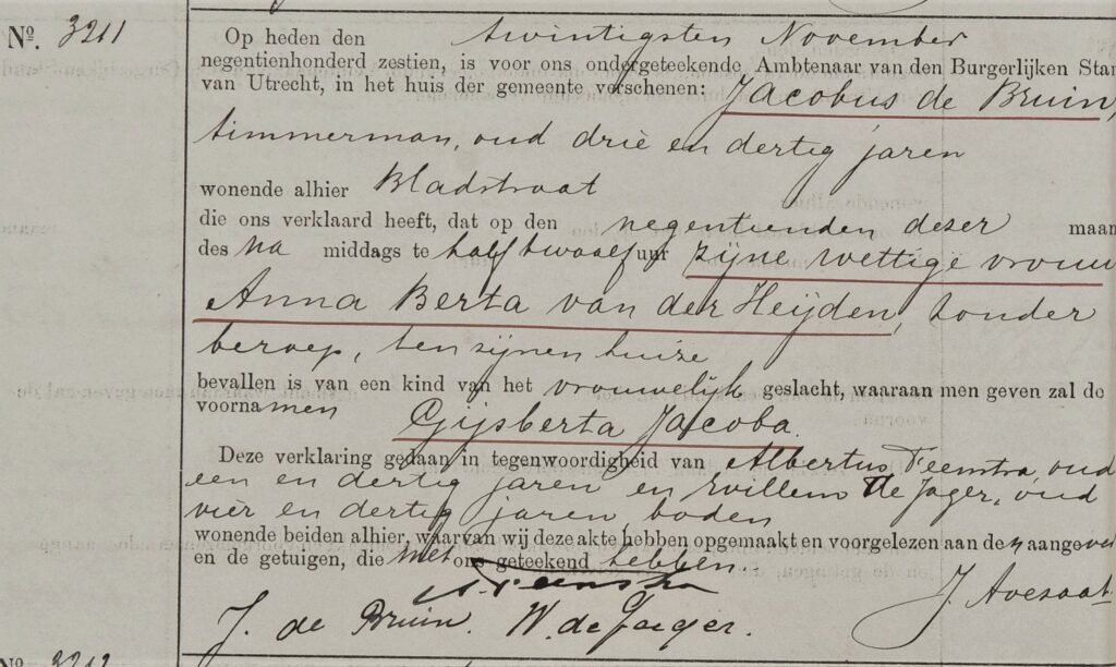 Geboorte Gijsberta Jacoba de Bruin, 19-11-1916